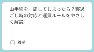 生活全般 山手線を一周してしまったら?寝過ごし時の対応と運賃ルールをやさしく解説 電車でうっかり寝過ごしてしまい、気づいたら山手線を一周していた、という経験はありませんか。改札で止められるのではないか、追加料金がかかるのではないかと、不安になりますよね。実は、寝過ごしで一周してしまった場合でも、落ち着いて対応すれば大きな... 生活全般