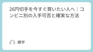 生活全般 26円切手を今すぐ買いたい人へ|コンビニ別の入手可否と確実な方法 26円切手が急に必要になって、困った経験はありませんか。今すぐ送りたい郵便物があると、どこで買えるのか分からず迷ってしまいますよね。この記事では、初心者の方でも分かりやすいように、26円切手の入手方法をやさしく整理します。コンビニごとの違い... 生活全般