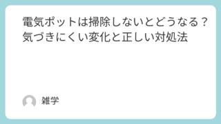 生活全般 電気ポットは掃除しないとどうなる?気づきにくい変化と正しい対処法 毎日何気なく使っている電気ポット。お湯を沸かすだけだから、あまり汚れないと思っていませんか。実は、掃除をしないまま使い続けると、少しずつ変化が起きやすくなります。気づきにくいからこそ、後回しにされがちな家電でもあります。この記事では、初心者... 生活全般