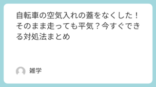 生活全般 自転車の空気入れの蓋をなくした!そのまま走っても平気?今すぐできる対処法まとめ 「あれ、自転車の空気入れの蓋がない…!」そんな経験、意外と多いですよね。実はこの小さなキャップ、空気を閉じ込めるためのものではなく、バルブを守る大切なパーツなんです。なくしてもすぐに空気が抜けることはありませんが、放置するとサビやゴミ詰まり... 生活全般