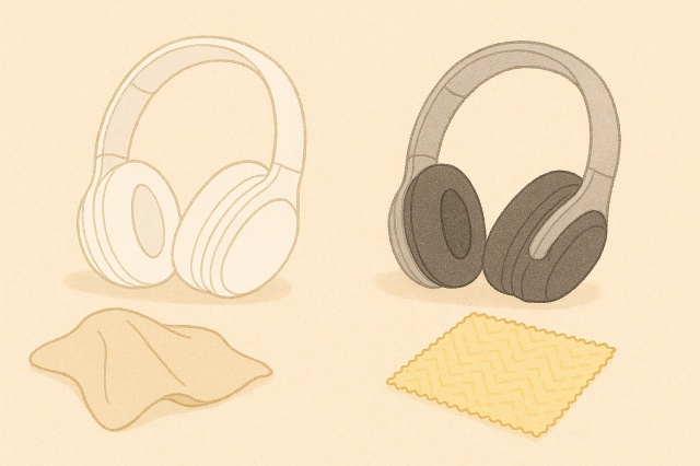 白いヘッドホンは、使用後にやわらかい布で軽く拭くだけでも清潔感を保てます。