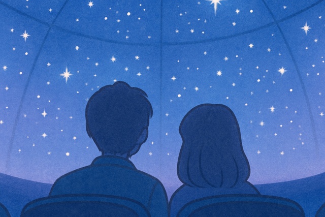 プラネタリウムは、落ち着いた空間で心を近づけるのにぴったりな場所です。