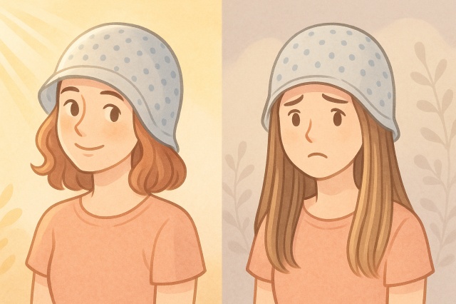 一方、ハイライトキャップを使えば、部分的に明るさを加えることで髪に動きと立体感が生まれ、軽やかな印象に変わります。