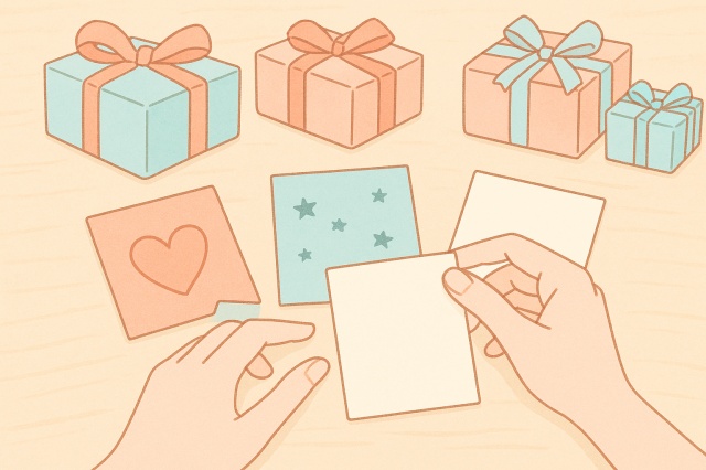 プレゼントに添えるカードには「毎日を楽しく過ごせますように」などの言葉を入れると、ギフトの印象がぐっと深まります。