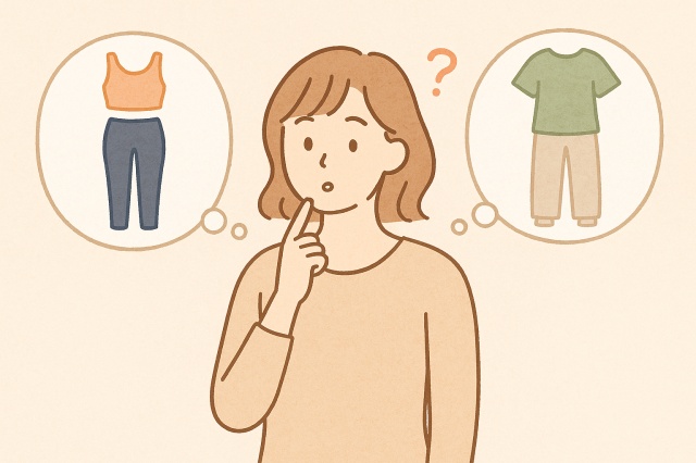 長めトップス+レギンス | 腰回りを隠してバランス良く | 初心者が安心して動けるスタイル |