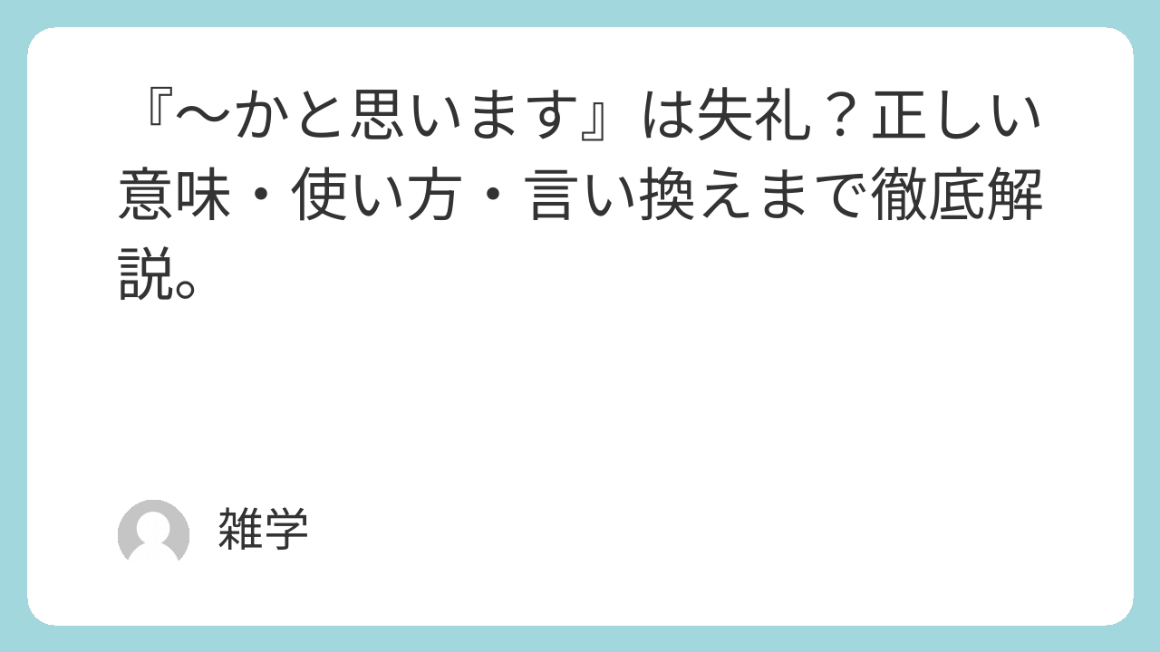 「〜かと思います」という表現は、一見すると丁寧でやわらかな印象を与える言葉です。
