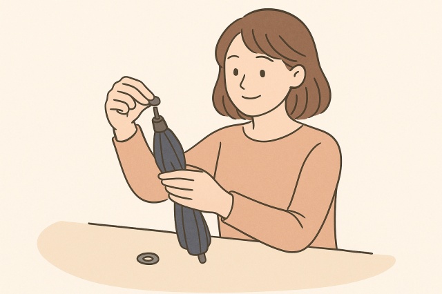 ワッシャーとボルトを組み合わせた代用法は、ネジ式の折り畳み傘との相性がとても良く、強度を重視したい人に向いています。