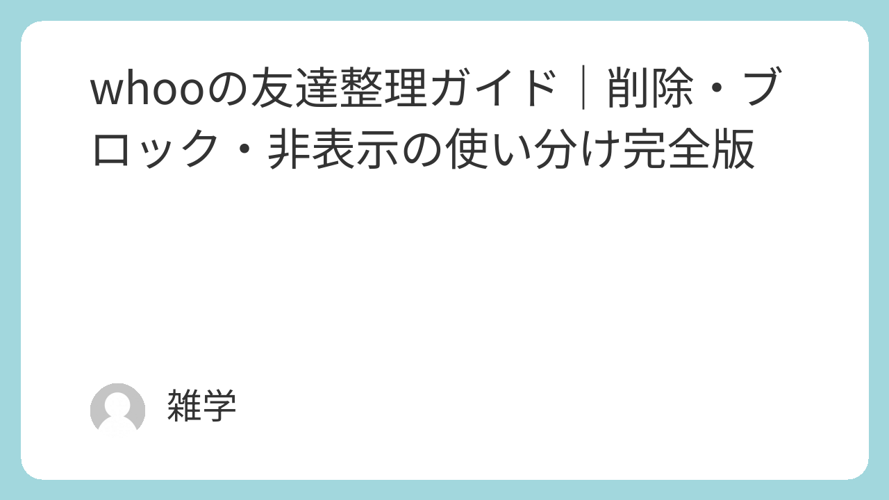 まとめ|削除・ブロック・非表示の使い分けで、安心してwhooを使おう