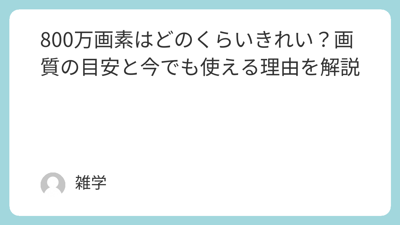 この記事では、初心者の方でも分かりやすいように、800万画素の実力をやさしく整理します。