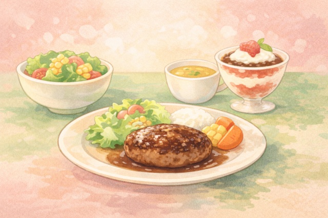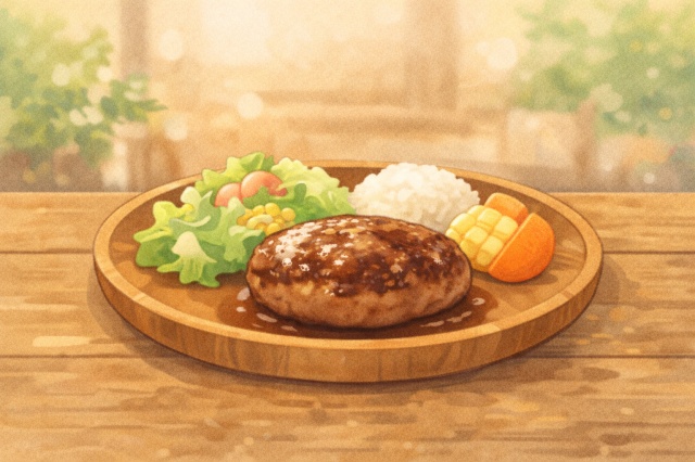 定番ハンバーグにシンプルなサイドを組み合わせると失敗しにくいです。