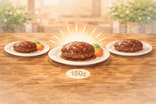 結論からお伝えすると、150gハンバーグは「ちょうどいい」と感じる人がとても多いサイズです。