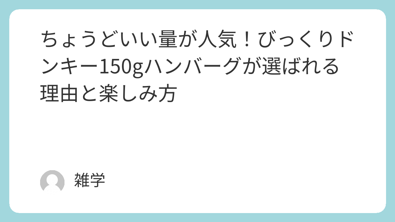 びっくりドンキーの150gハンバーグは、量と満足感のバランスが魅力です。