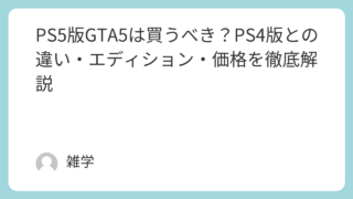 ゲーム PS5版GTA5は買うべき?PS4版との違い・エディション・価格を徹底解説 PS5で『グランド・セフト・オートV(GTA5)』をプレイするなら、どのバージョンを選ぶべきか迷っていませんか?PS4版と比べてどれほど進化しているのか、どのエディションを買えばいいのか、そして少しでもお得に入手する方法はあるのか──。この... ゲーム