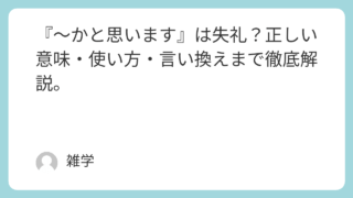 人間社会 『〜かと思います』は失礼?正しい意味・使い方・言い換えまで徹底解説。 「〜かと思います」という表現は、一見すると丁寧でやわらかな印象を与える言葉です。ですが、使い方によっては曖昧すぎたり、自信がないように聞こえてしまったりすることもあります。特にビジネスの場面では、相手に誤解を与えることもあるため、正しく理解... 人間社会