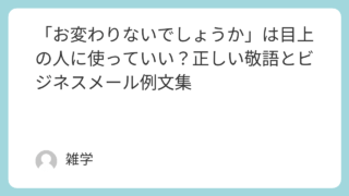 人間社会 「お変わりないでしょうか」は目上の人に使っていい?正しい敬語とビジネスメール例文集 「お変わりないでしょうか」という言葉は、丁寧で柔らかい印象があります。しかし、いざ使おうとすると「目上の人に使って失礼ではないかな?」と不安に感じる方は多いです。とくにビジネスメールでは、言葉選びひとつで印象が大きく変わります。本記事では、... 人間社会