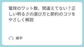 生活全般 電球のワット数、間違えてない?正しい明るさの選び方と節約のコツをやさしく解説 毎日の暮らしの中で、なくてはならない存在である“電球”。 でも「明るさはワット数で見ればいいんでしょ?」と思っていませんか? 実はその考え、もう昔の話かもしれません。今の主流はLED。 その特徴や選び方を知っておくだけで、電気代の節約にもつ... 生活全般