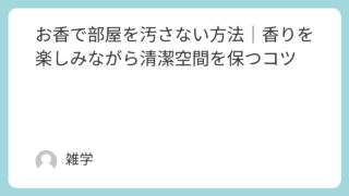 生活全般 お香で部屋を汚さない方法|香りを楽しみながら清潔空間を保つコツ お香を焚くときの穏やかな香りは、心を落ち着かせて日常に癒しを与えてくれます。しかしその一方で、煙や灰が壁や家具を汚す原因になることもあるのをご存じでしょうか。この記事では、「お香を楽しみながら部屋を汚さない」ための実践的な方法を徹底解説しま... 生活全般