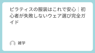 生活全般 ピラティスの服装はこれで安心|初心者が失敗しないウェア選び完全ガイド ピラティスを始めたいけれど、「どんな服を着ればいいの?」と悩んでいませんか。スタジオに行く前は、動きやすさと見た目のバランスが気になって、なかなか服装を決められないものですよね。この記事では、初心者でも安心して選べるピラティスの服装を、実用... 生活全般