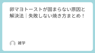 生活全般 卵マヨトーストが固まらない原因と解決法|失敗しない焼き方まとめ! 卵とマヨネーズ、そしてこんがり焼けたパンの香ばしさ。朝食や軽食にぴったりな卵マヨトーストは、手軽なのに満足感たっぷりの人気メニューです。でも、いざ作ってみると「卵が固まらない」「べちゃべちゃになる」「焦げてしまった」など、ちょっとした悩みに... 生活全般