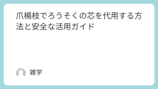生活全般 爪楊枝でろうそくの芯を代用する方法と安全な活用ガイド キャンドル作りに興味はあるけれど、芯の材料が手元になくて困った経験はありませんか?そんなとき、意外と役に立つのが「爪楊枝(つまようじ)」です。どの家庭にもある身近な道具ですが、ちょっとした工夫で芯として代用することができるんです。しかも、特... 生活全般