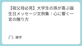 生活全般 【祖父母必見】大学生の孫が喜ぶ誕生日メッセージ文例集|心に響く一言の贈り方 大学生になると、生活ががらりと変わります。 授業、アルバイト、友人との時間、新しい環境での出会い。 楽しいことも増えるけれど、同時に忙しさや不安も多くなる時期です。そんな中で、家族と過ごす時間や連絡の頻度は少しずつ変わっていきます。 気づけ... 生活全般