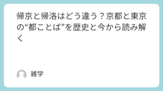 言葉 帰京と帰洛はどう違う?京都と東京の“都ことば”を歴史と今から読み解く 「帰京」や「帰洛」という言葉、耳にしたことはありますか? どちらも“都に帰る”という意味を持ちながら、実は使い方や込められた背景には大きな違いがあるんです。東京に戻るのが「帰京」、京都へ帰るのが「帰洛」…と思いがちですが、実はそれだけではあ... 言葉